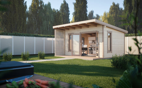 Andrea L (6,9x3m | 11,2+7,9m² | 44mm) piharakennus liukuovilla (saatavana kaksilasitus) Alkaen €7.14900Yksikköhinta /Ei saatavilla+1