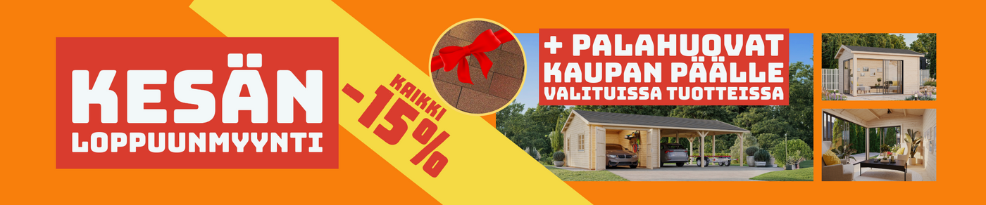 Roger (9,8x5,7m | 19m²+33,2m² | 44mm) Autotalli ja kaksoisautokatos