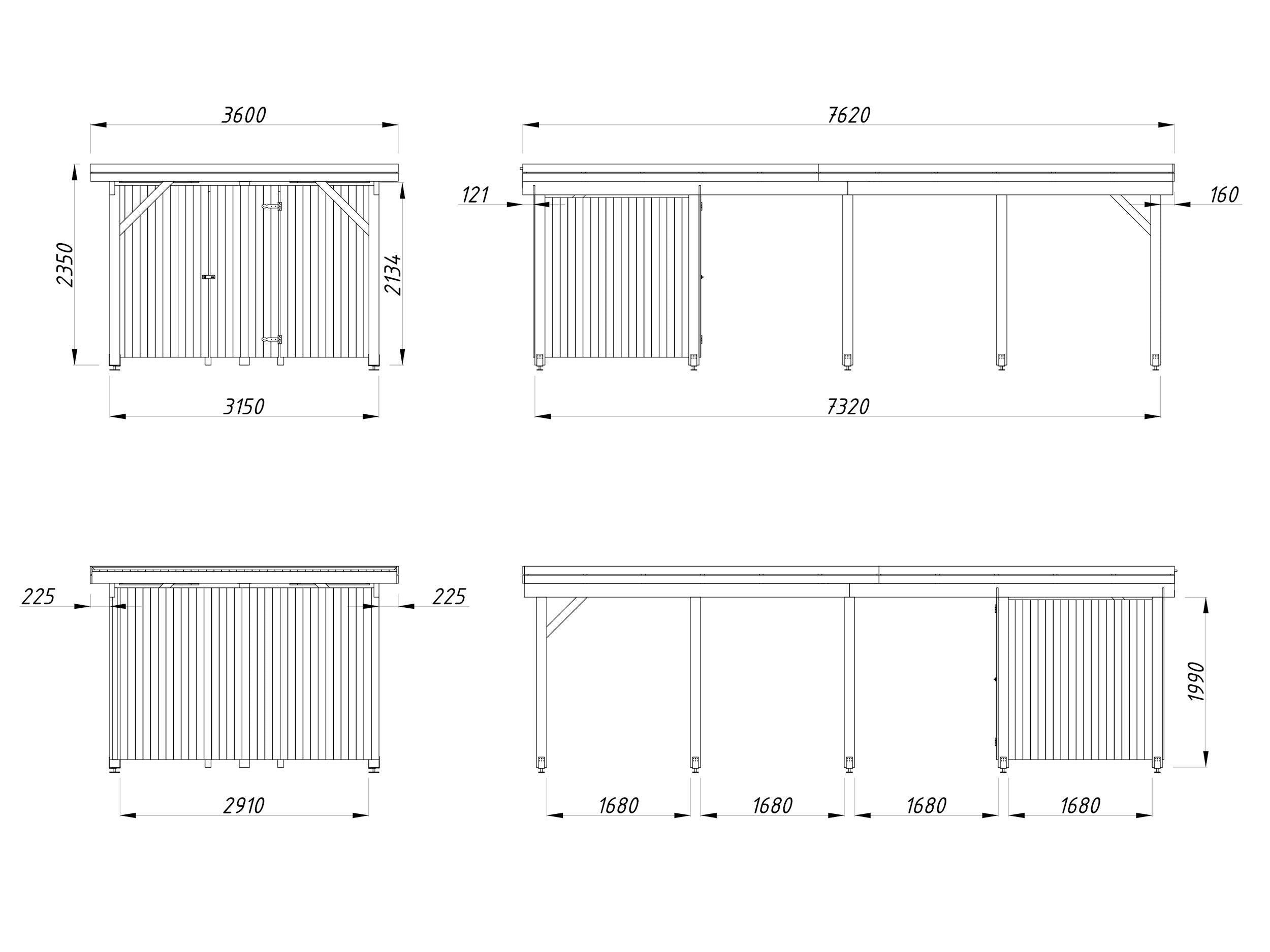 Karl L+ (3,2x7,3m | 23,1m² | 120x120mm) Pulpettikattoinen autokatos varastolla