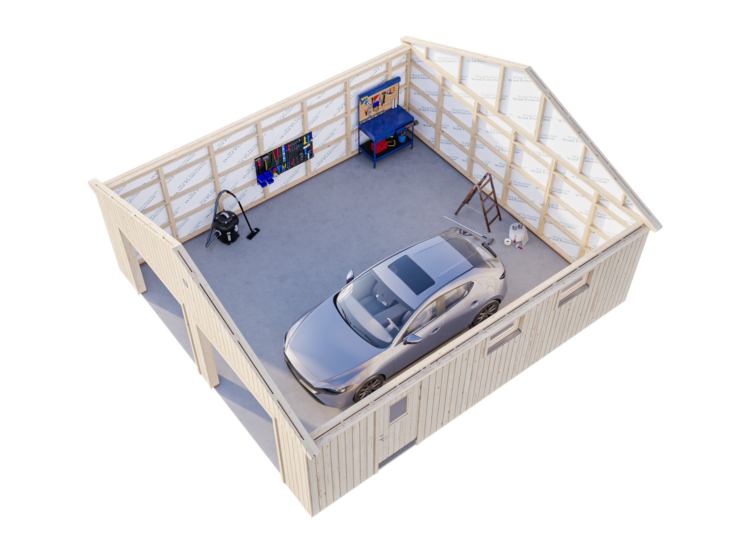 Andre 44.7 m² -kaksoisautotalli on täydellinen valinta niille, jotka tarvitsevat reilusti tilaa ajoneuvoille ja lisäsäilytykseen. Tämä raskaan käytön puutalli tarjoaa runsaasti tilaa kahdelle autolle ja jättää vielä ylimääräistä tilaa työkaluille, varusteille ja muille tarvikkeille. Tyylikäs ja kestävä rakenne tekee siitä käytännöllisen lisän mille tahansa tontille.