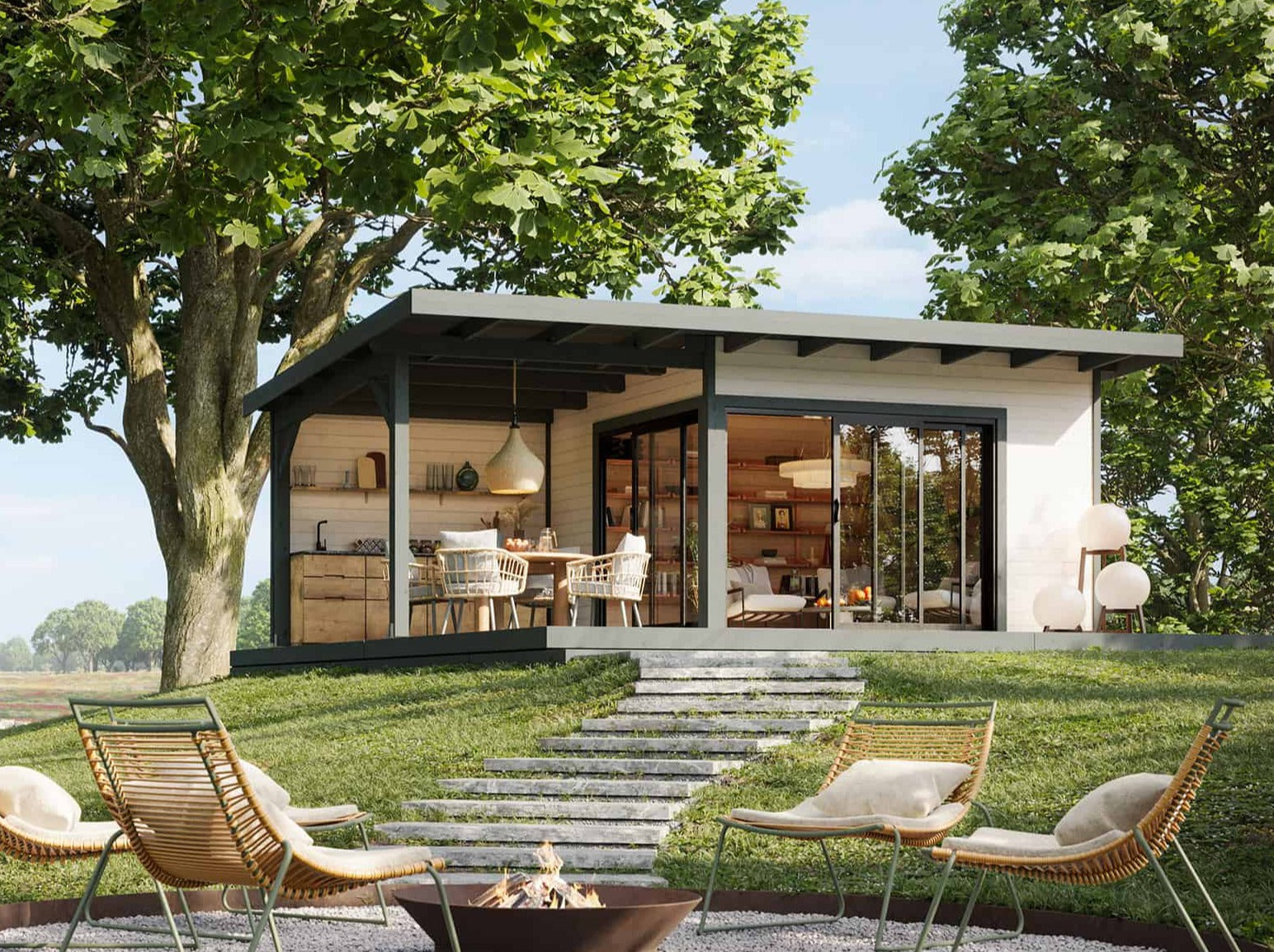 Andrea L (6,9x3m | 11,2+7,9m² | 44mm) piharakennus liukuovilla (saatavana kaksilasitus)