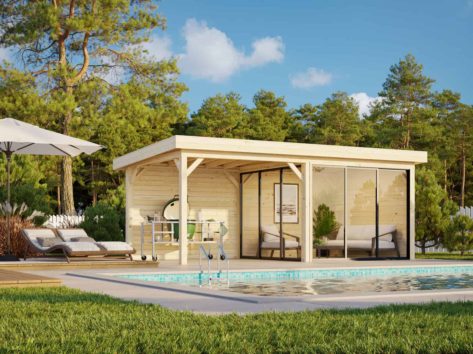 Lenna 405/705 (6x3m | 16,6m²) Lasinen piharakennus liukuovilla (Saatavana tuplalasilla)