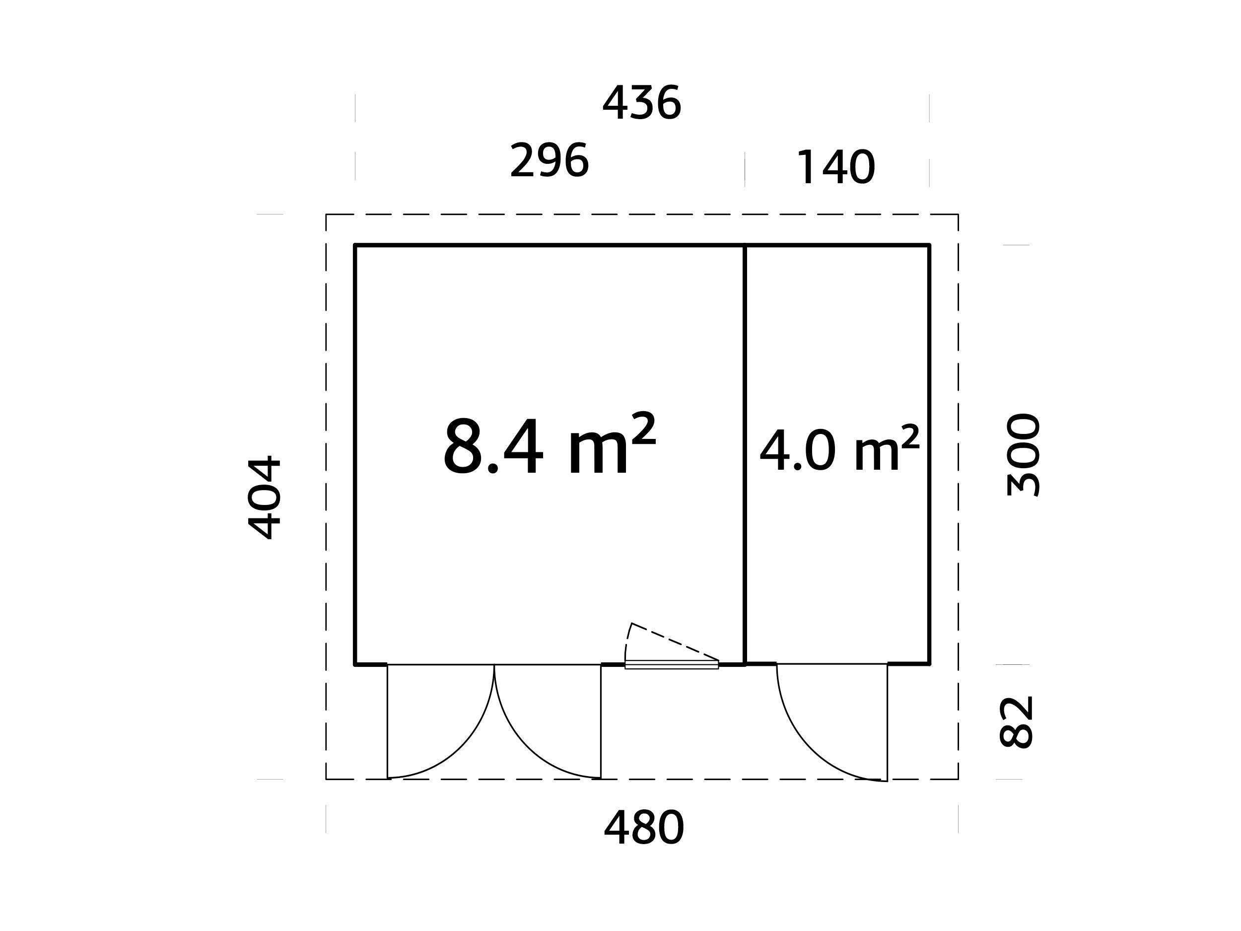 Aurelia S (4,4x3 m | 12,4 m² | 44 mm) Kompakti pihahuone sivuvajalla