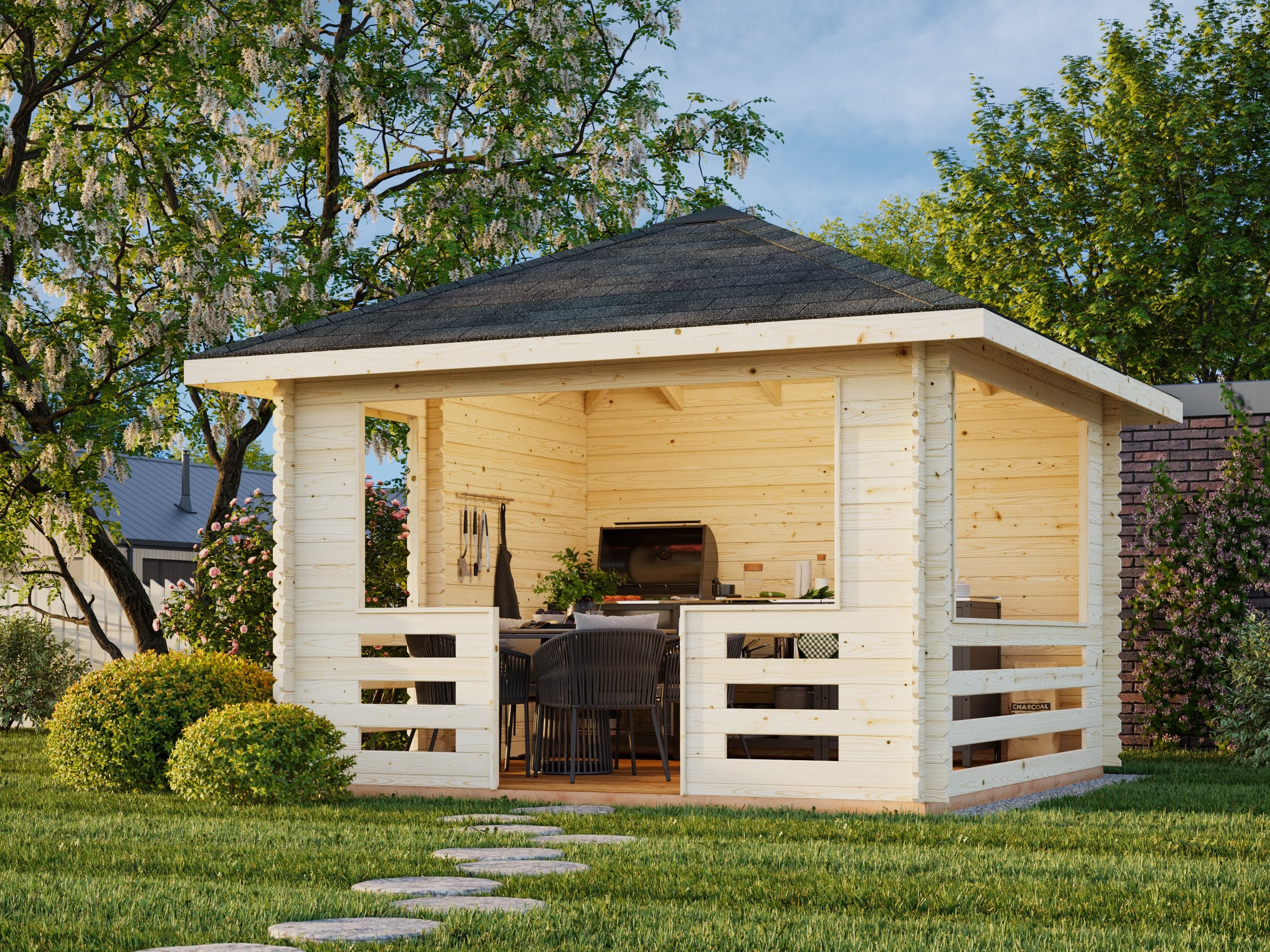 Julie (3.5x3.5m | 10.5m² | 28mm) Puuinen huvimaja tuulensuojalla