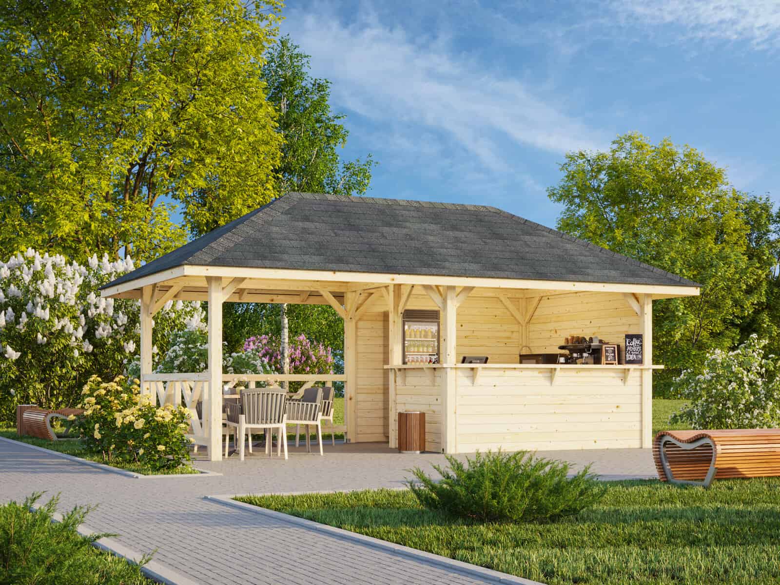 Bianca 110 (5,9x3m | 16,6m²) puutarhabaari katoksella