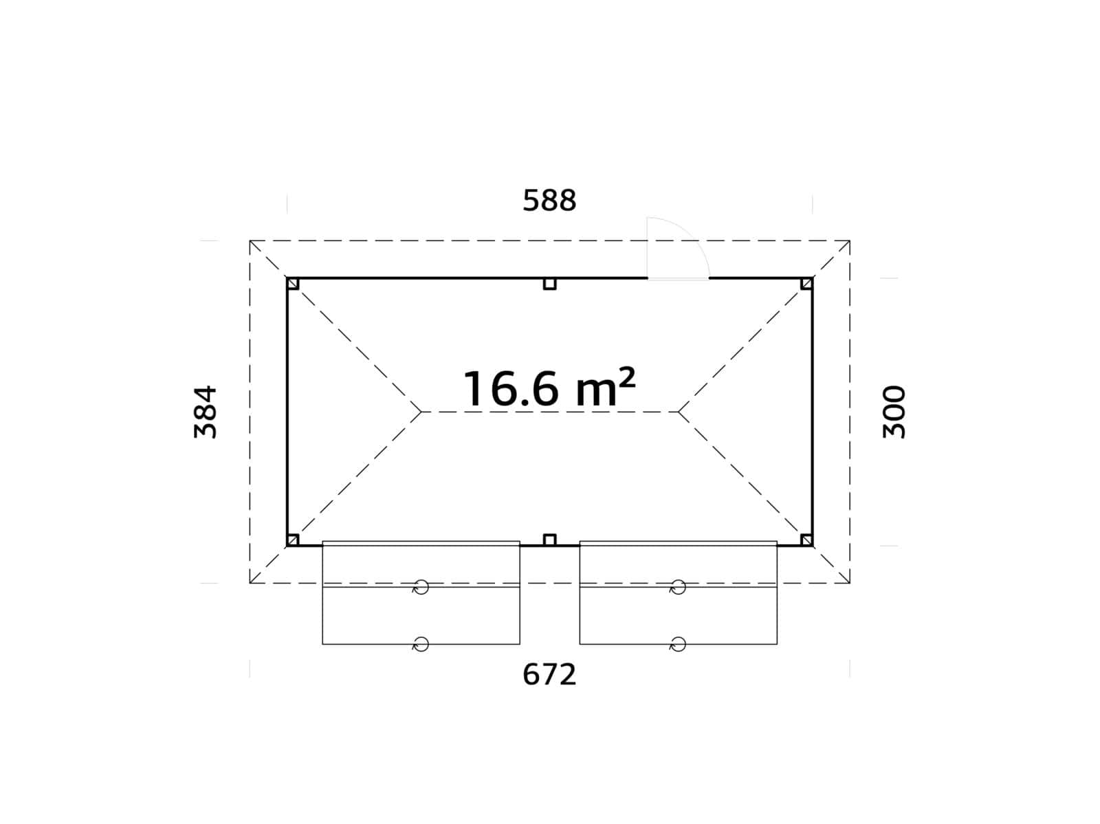 Bianca 111 (5,9x3m | 16,6m²) kaksoiskioski kahdella luukulla