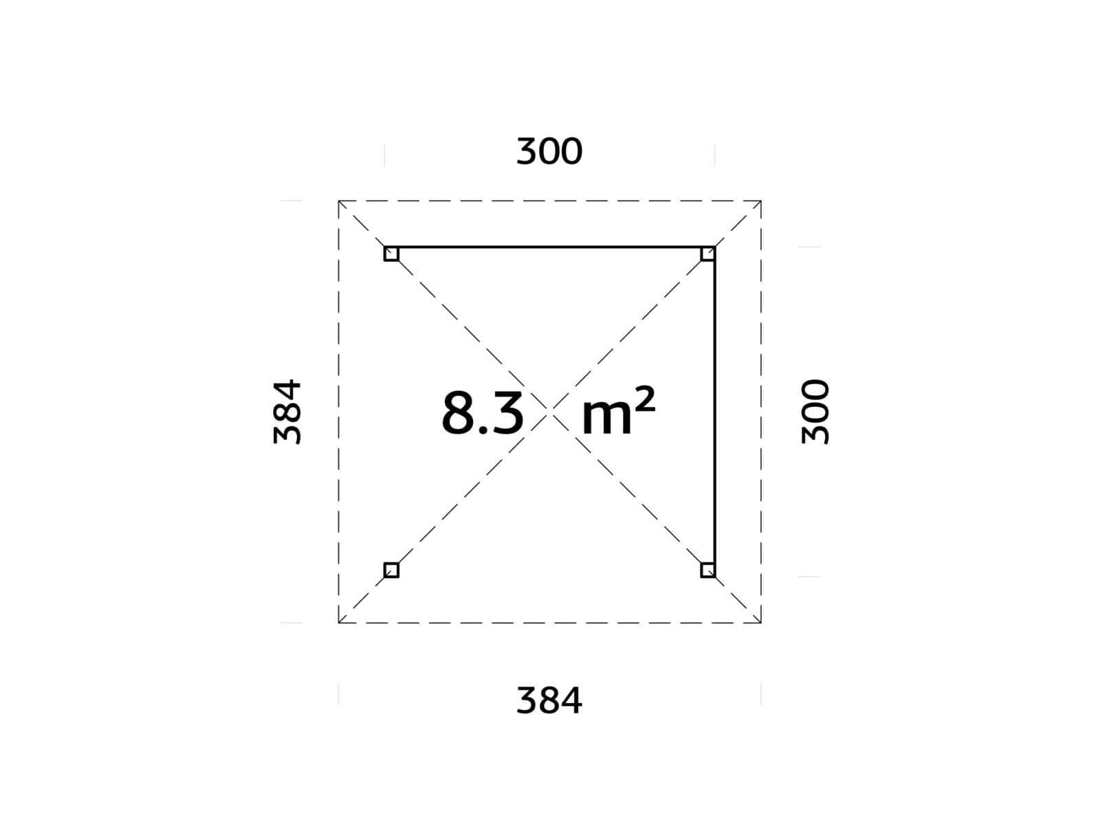 Bianca 102 (3x3m | 8,3m²) kulmahuvimaja sälekaihdinseinillä