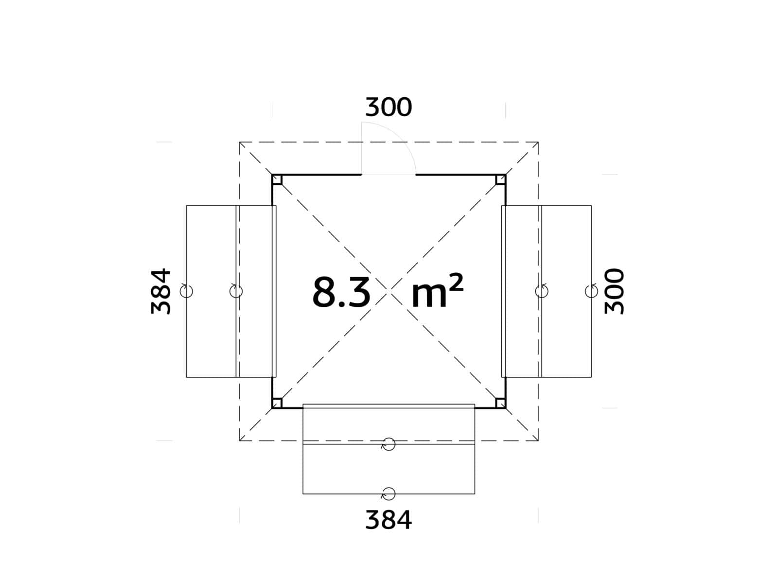 Bianca 106 (3x3m | 8,3m²) kioski kolmella luukulla