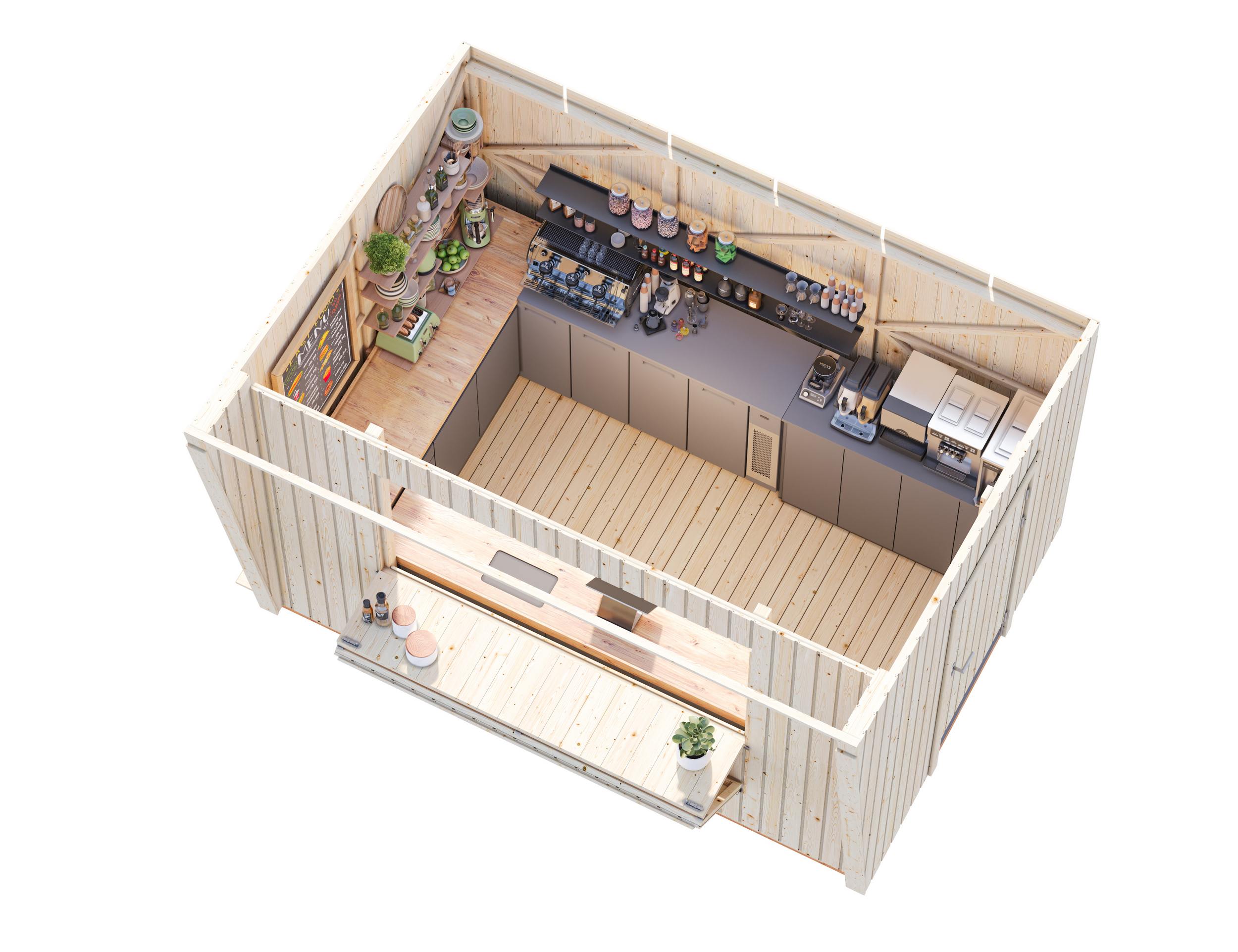 Kira (3,6x2,3m | 7,7m²) Puinen puutarhabaari