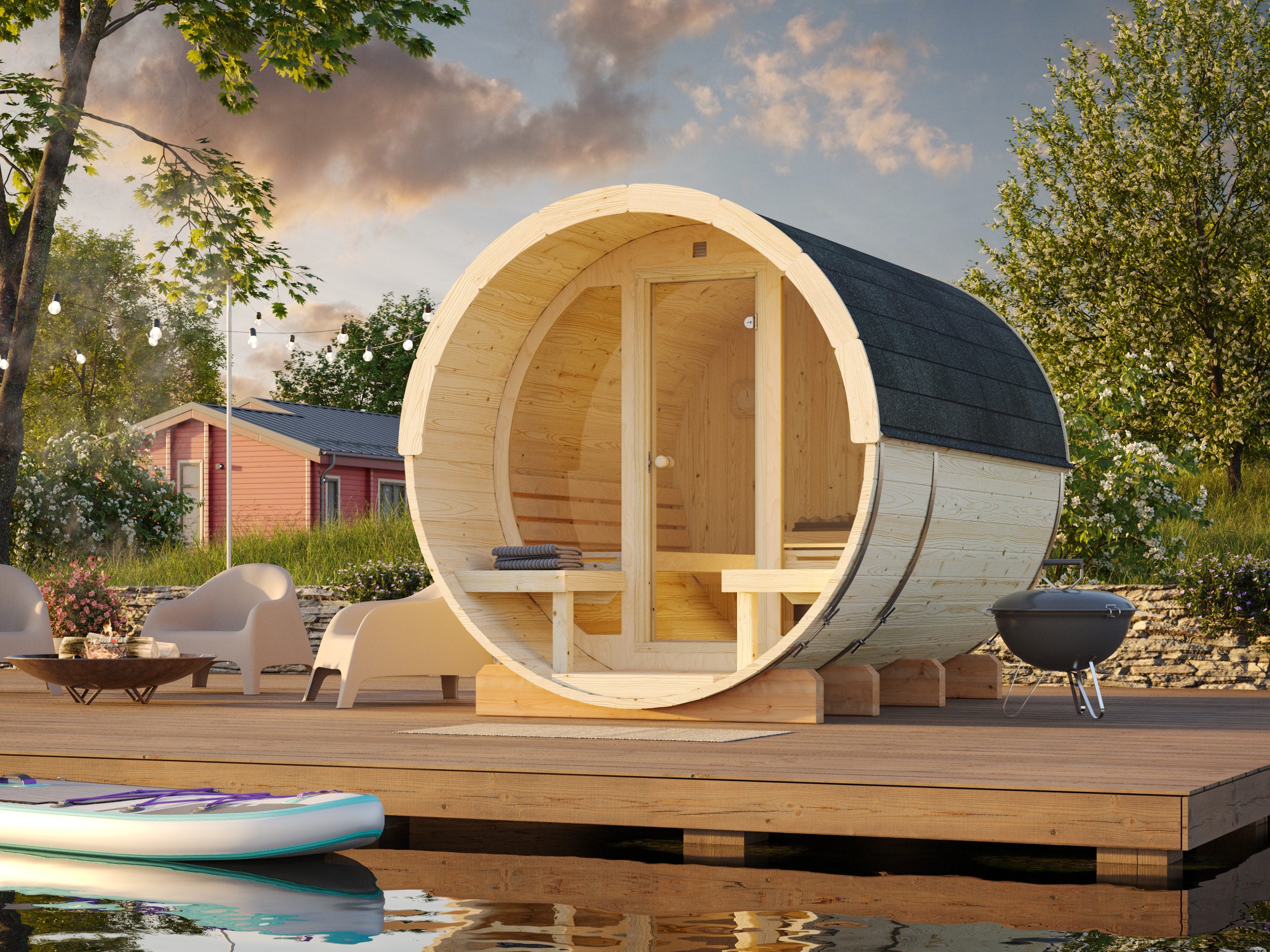 Anita L -tynnyrisauna on täydellinen valinta niille, jotka haluavat lisätä pihansa viihtyisyyttä toiminnallisella ja ylellisellä saunalla. Se yhdistää perinteisen saunan hyödyt ja modernin muotoilun, luoden kutsuvan ja rentouttavan tilan, joka parantaa hyvinvointiasi ja tarjoaa nautinnollisia hetkiä ympäri vuoden.