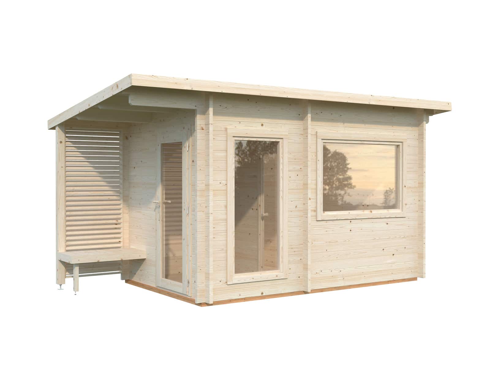 Sanna M (3,7x2,3m | 6,8m² | 44mm) Moderni pihasauna pukuhuoneella