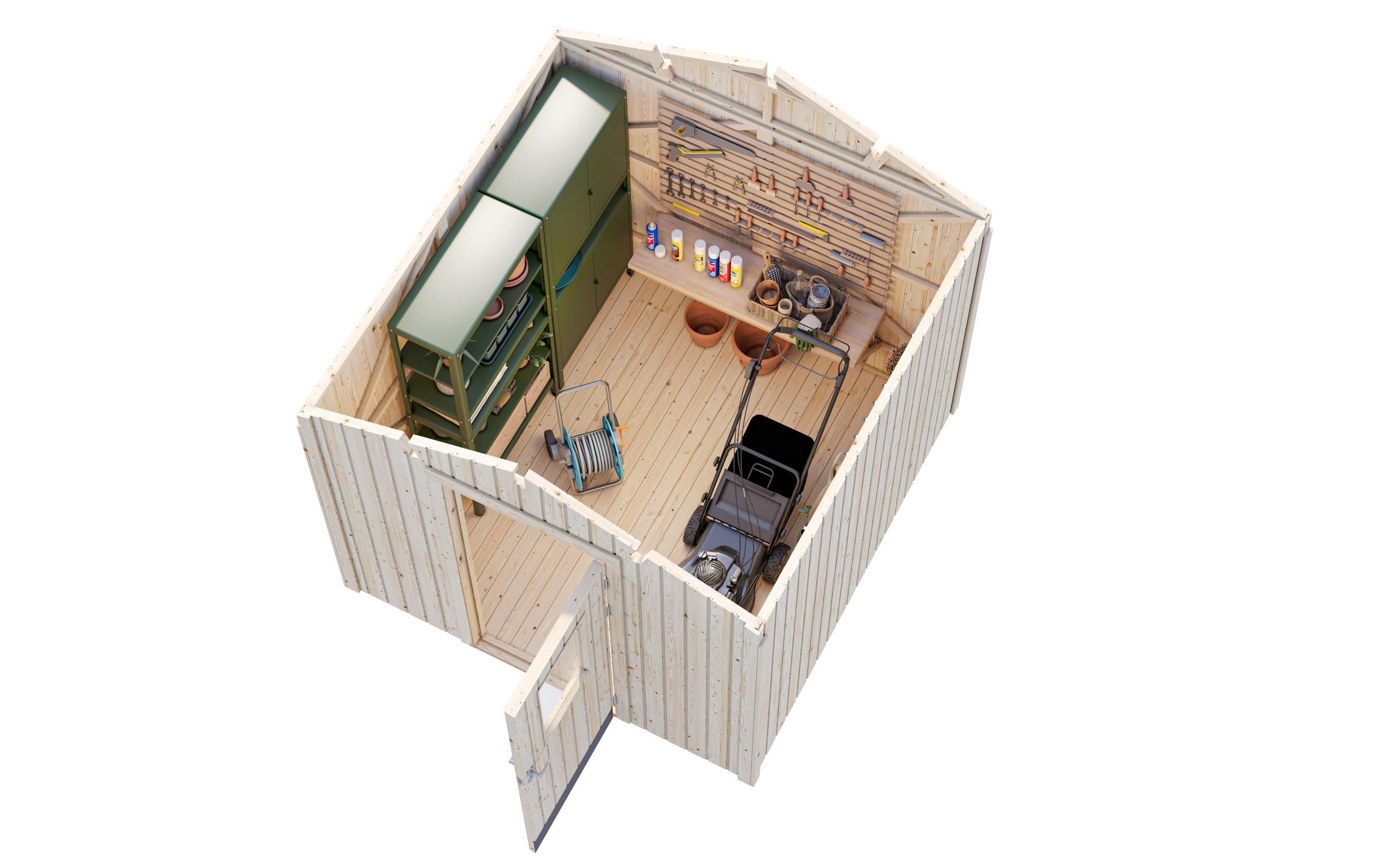 Lucas S on kompakti ja tehokas pihavaja, joka tarjoaa luotettavan säilytystilan pienempiin puutarhoihin tai lisävarastoksi suurempiin pihoihin. Laadukkaasta pohjoismaisesta kuusesta valmistettu vaja kestää hyvin vaihtelevia sääolosuhteita ja tarjoaa turvallisen paikan puutarhatyökaluille, urheiluvälineille tai kausittaisille tarvikkeille.