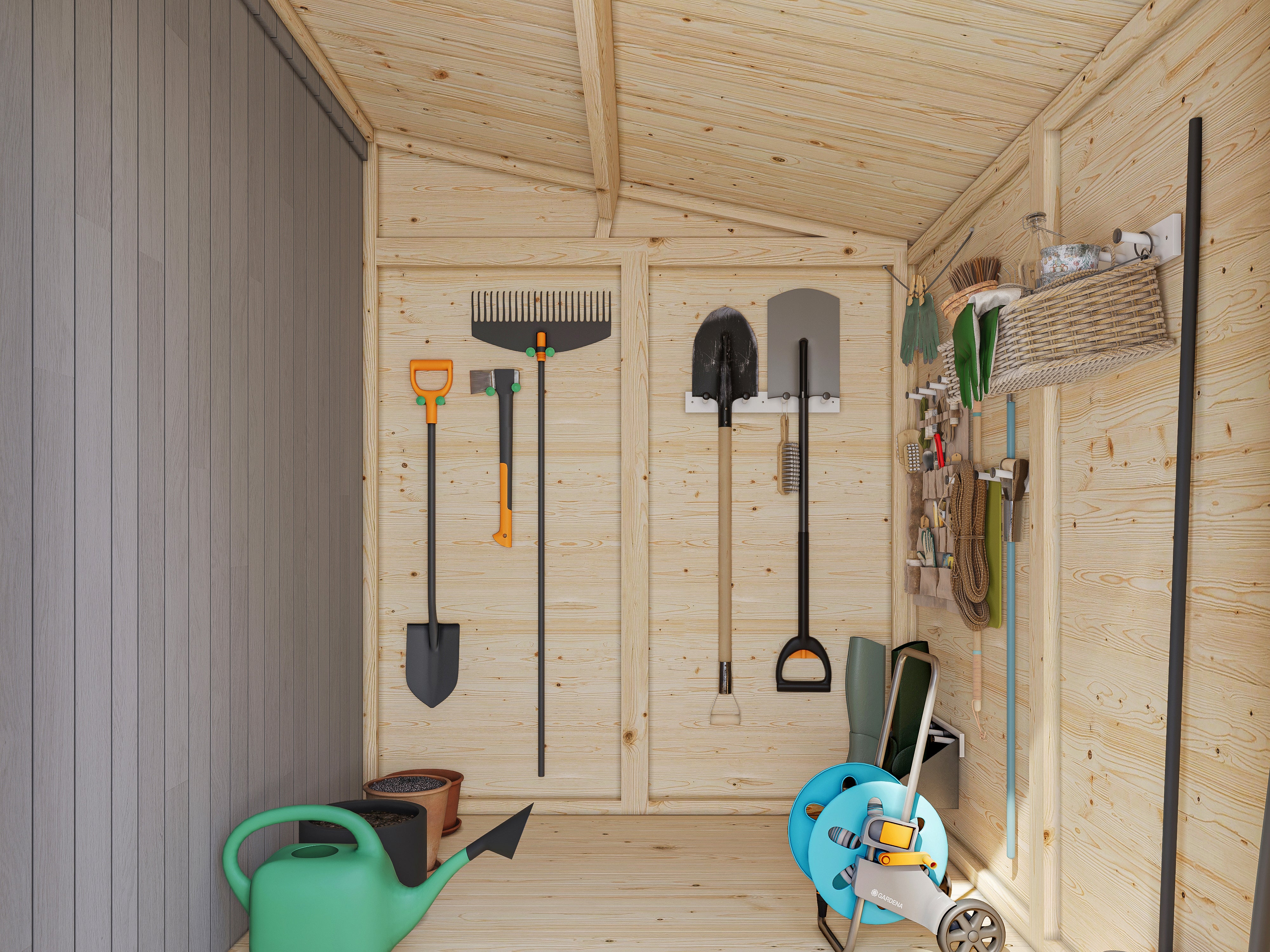 Mia S varastovaja on täydellinen valinta, jos etsit kompaktia, kestävää ja helposti sijoitettavaa ulkovarastoa. Sen tilaa säästävä muotoilu ja muunneltava ovisijoittelu mahdollistavat tehokkaan säilytyksen ilman turhaa tilankäyttöä. Lisää toimivuutta ja järjestystä pihallesi Mia S -varastolla!