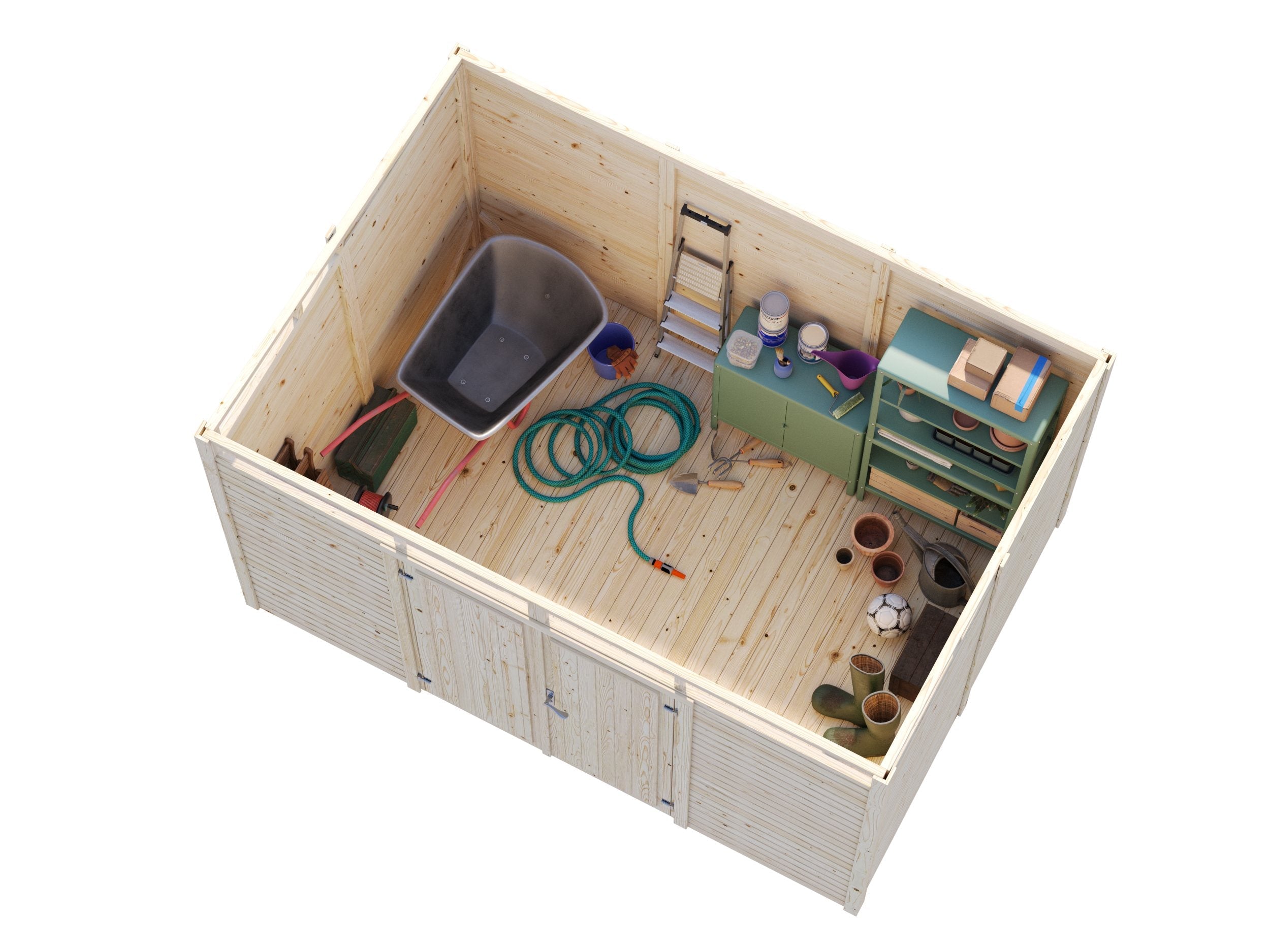 Elias M (3,3x2,3 m | 7,3 m² | 16 mm) Puinen pihavarasto yläikkunoilla
