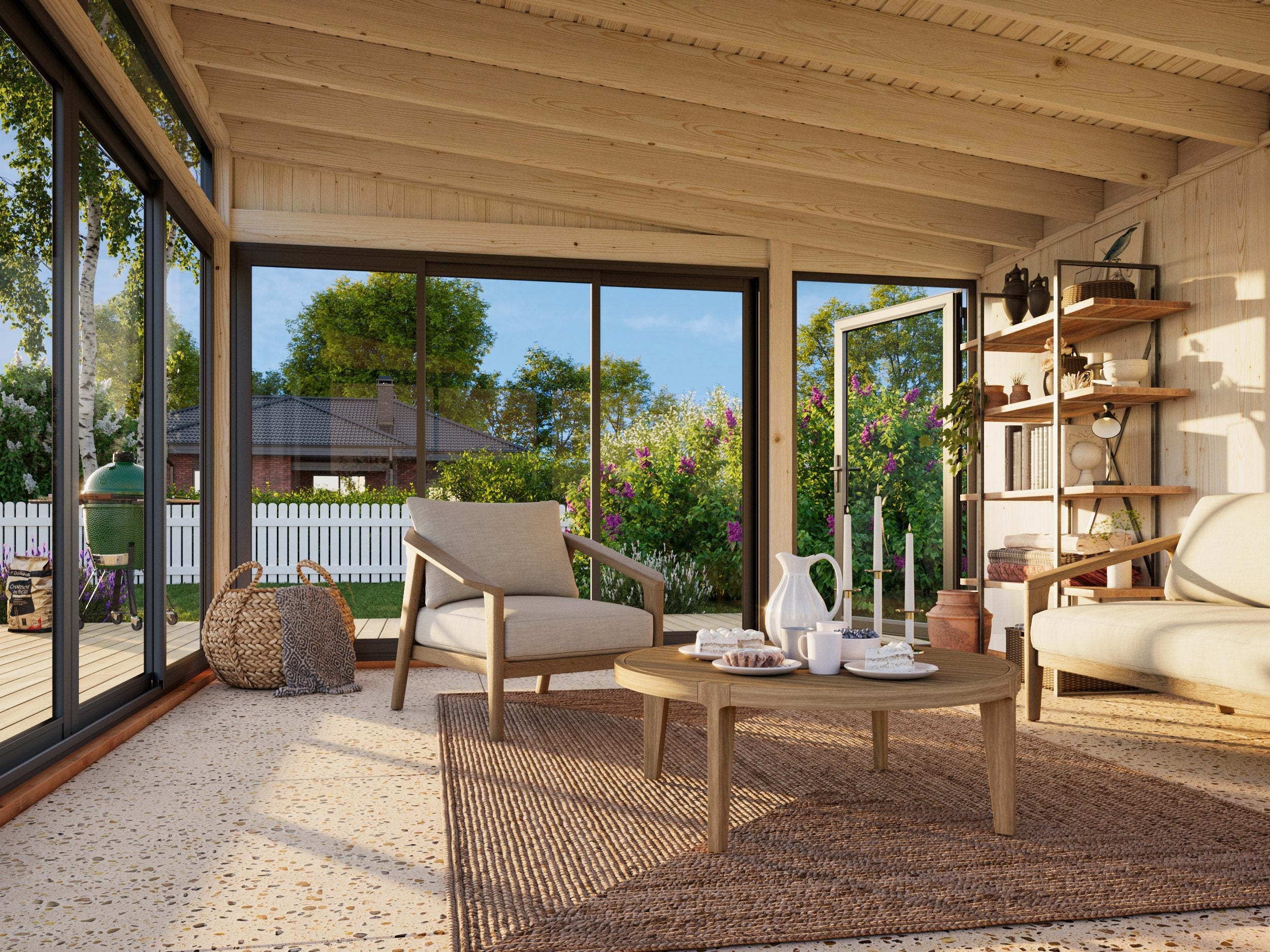 Rakennus on heti suojattu asennuksen jälkeen ja sen käyttöikä on pidempi kuin paikan päällä maalatuilla tuotteilla. Et tarvitse siveltimiä, pressuja tai tikkaita – eikä menetettyjä viikonloppuja tai sääriskejä. Uusi mökkisi on valmis: pura, kokoa ja nauti.