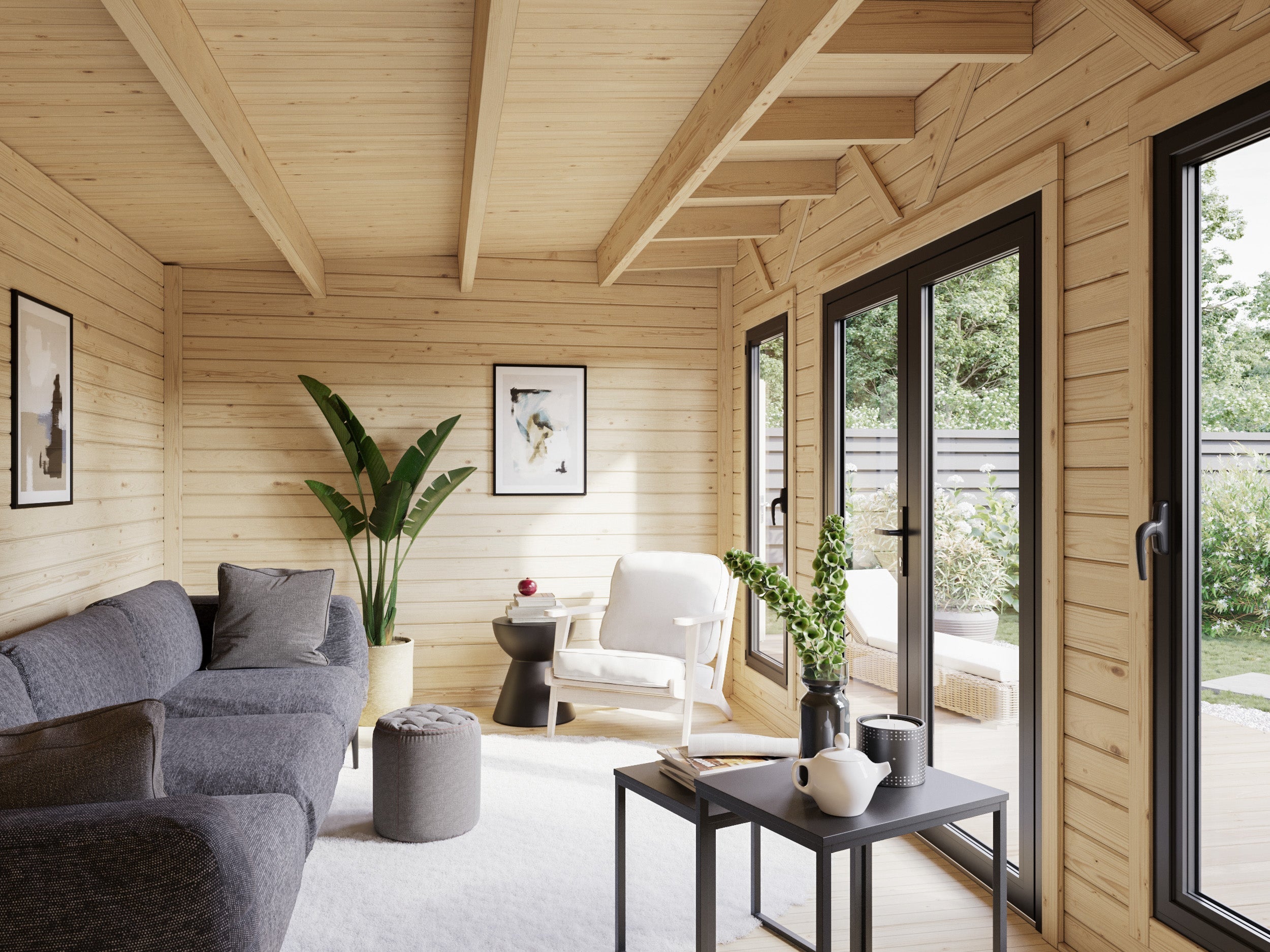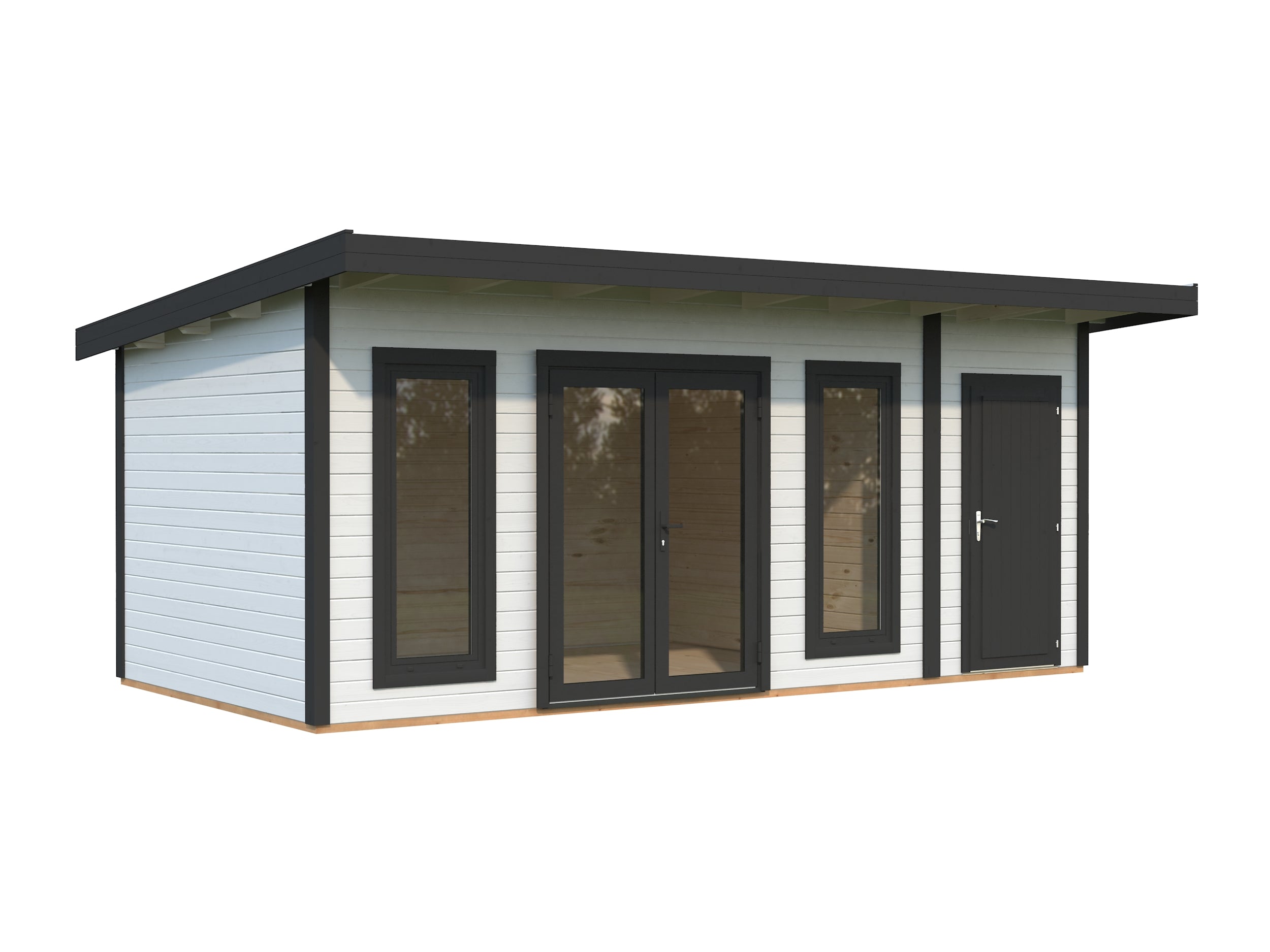Aurelia XL (5,9x3 m | 16,7 m² | 44 mm) Moderni pihahuone työkaluvajalla