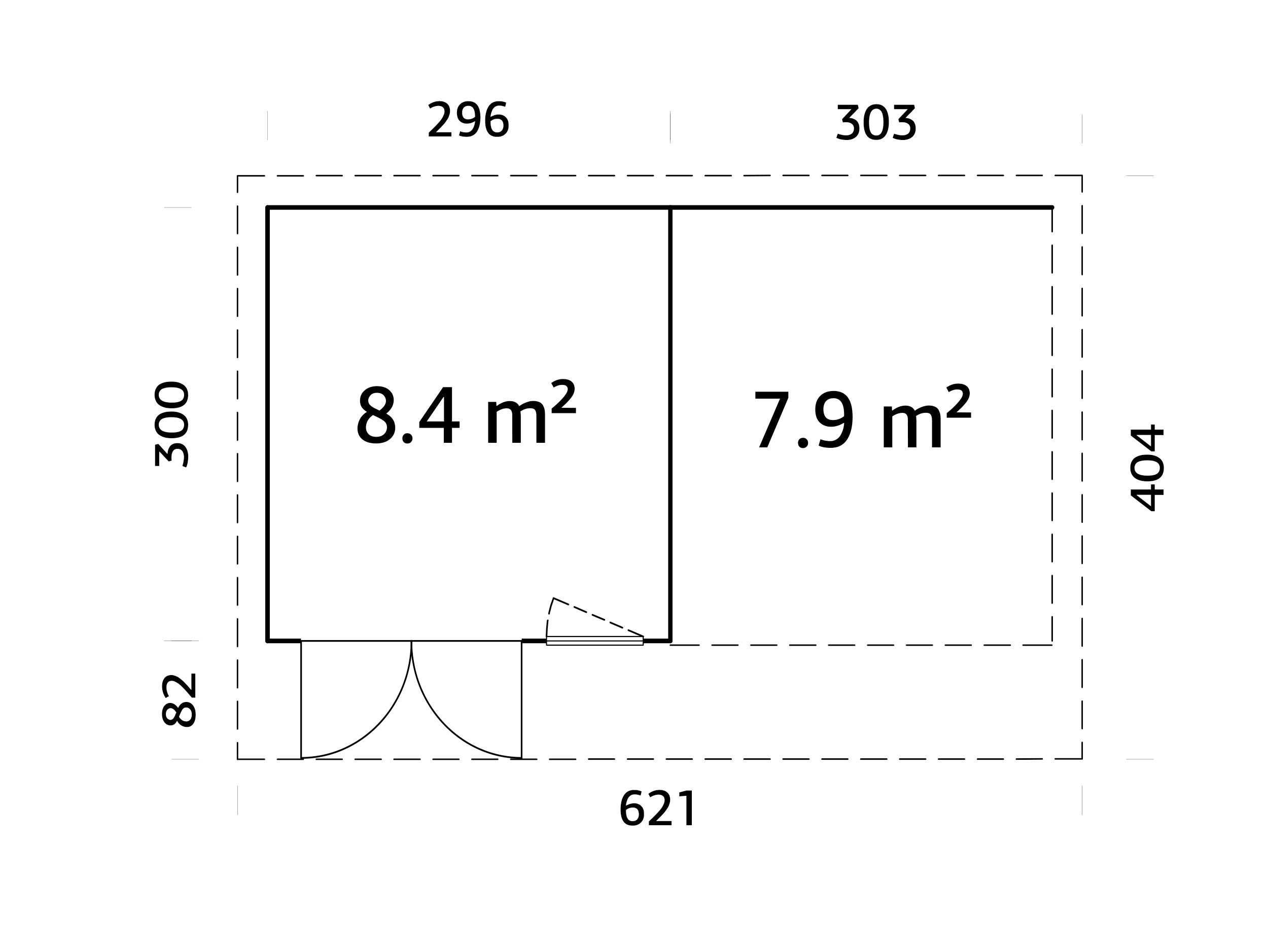 Aurelia XS+ (6x3 m | 8,4 + 7,9 m² | 44 mm) Moderni pihahuone katoksella