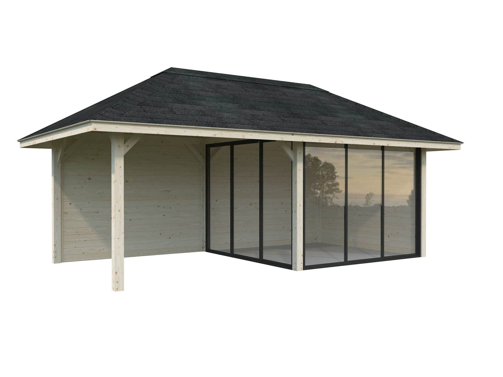 Bianca 205/505 (6x3m | 16,6m²) lasinen piharakennus terassilla (saatavana tuplalasilla)