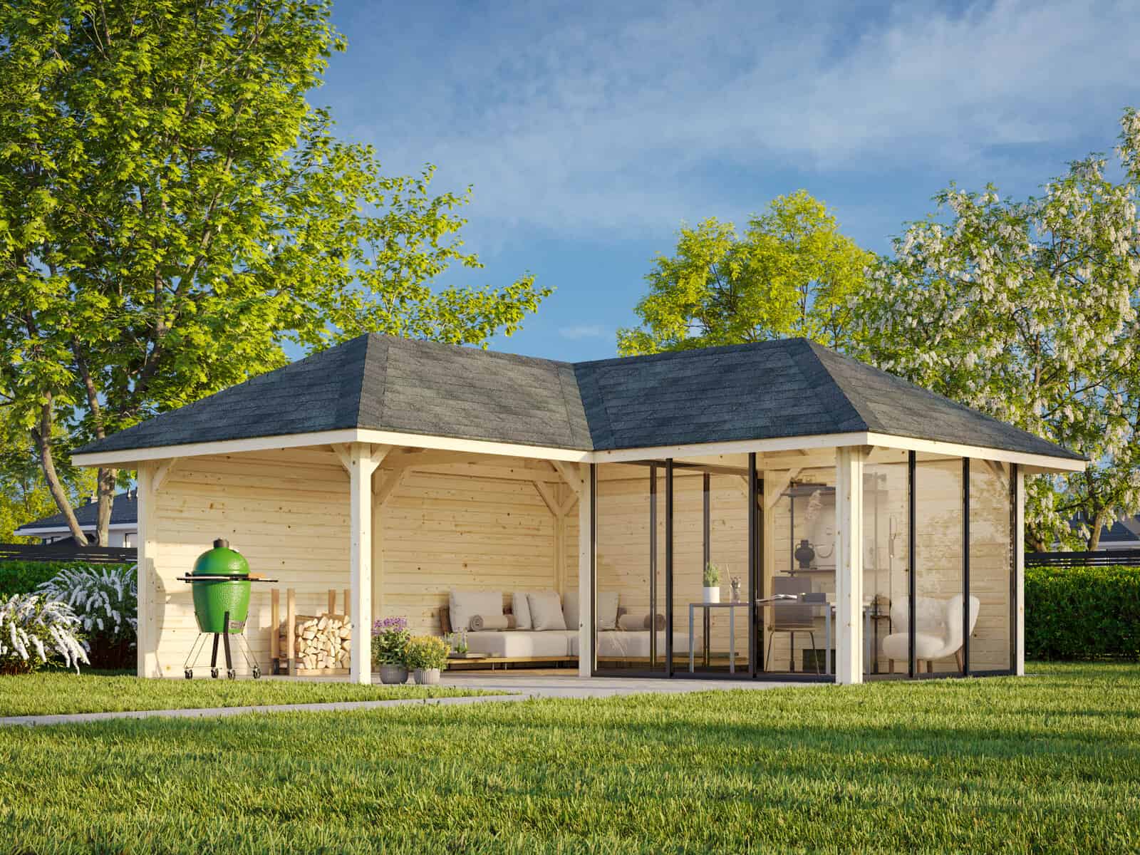 Bianca 212/512 (6x6m | 24,9m²) piharakennus liukuovilla (saatavana tuplalasilla)