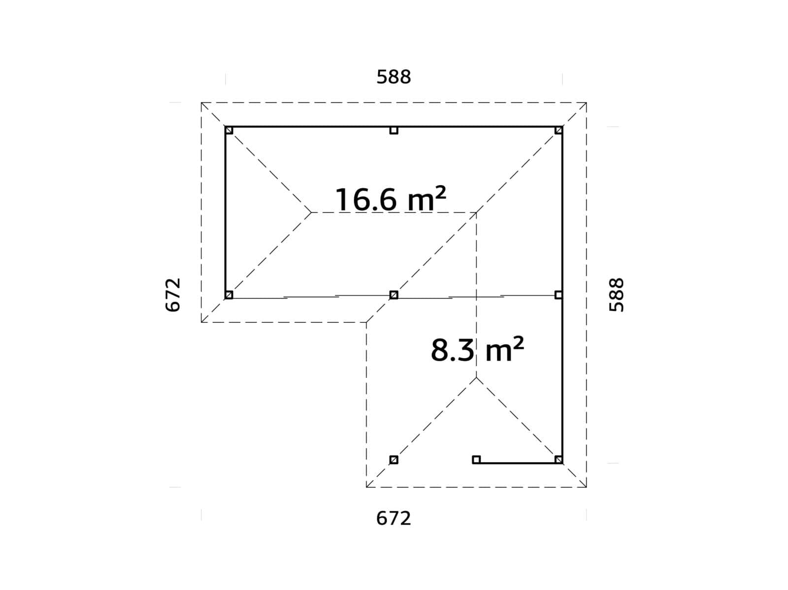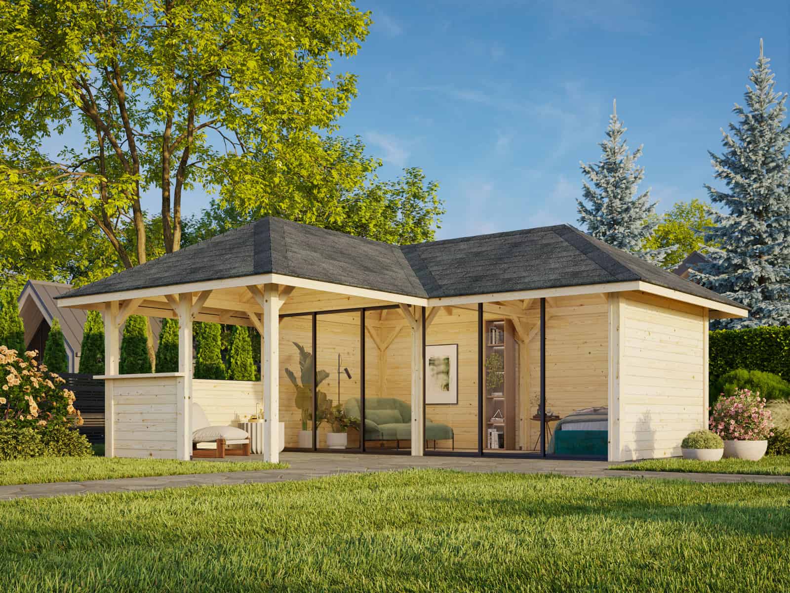 Bianca 222/522 (6x6m | 24,9m²) piharakennus liukuovilla (saatavana tuplalasilla)