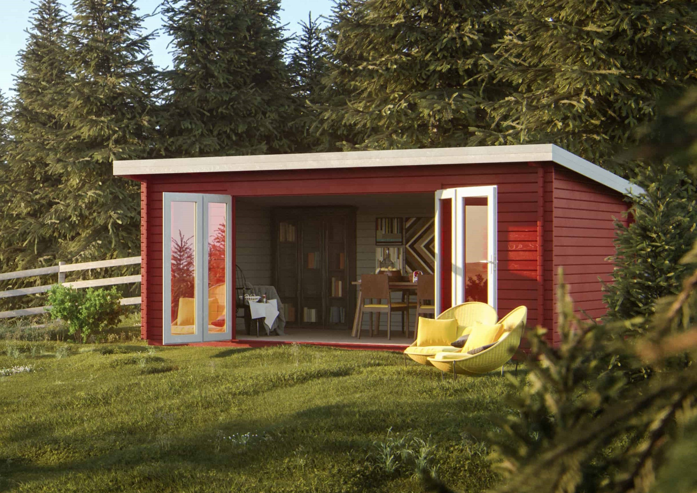 Lea L (5,5x4m | 19,4m² | 44mm) Pulpettikattoinen piharakennus taitto-ovilla